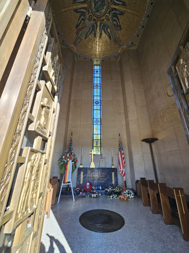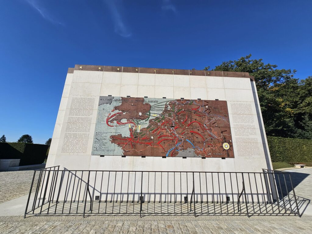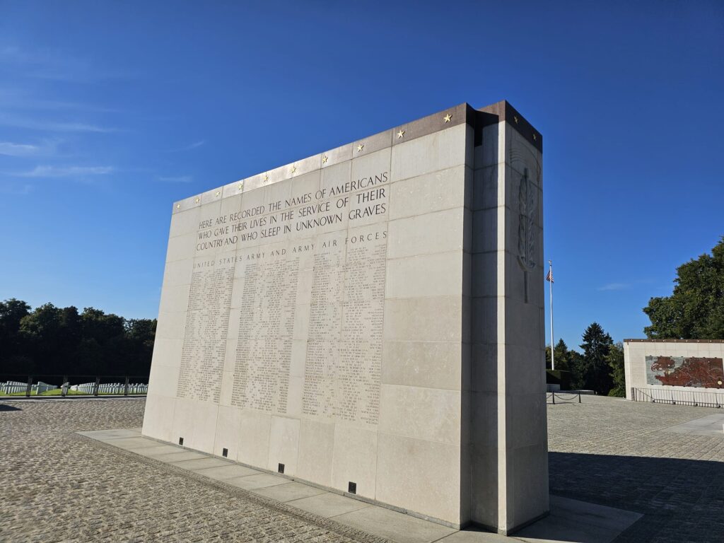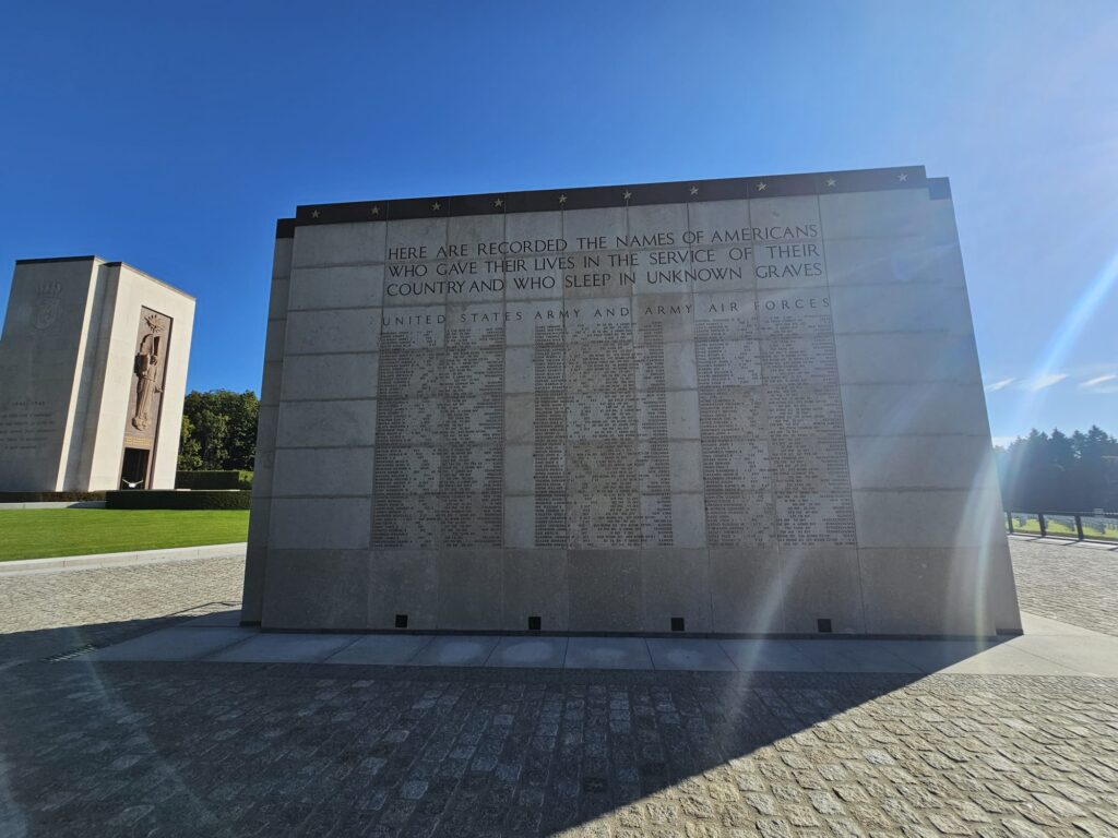 The sight has a memorial chapel and 5,076 American soldiers rest here. Including General George S. Patton Jr. Additionally, the names of 371 Americans whose remains were never recovered/identified are inscribed on two big stone pylons below the chapel on the paved terrace you come in when you enter. 101 of the graves are of unknown fallen soldiers.